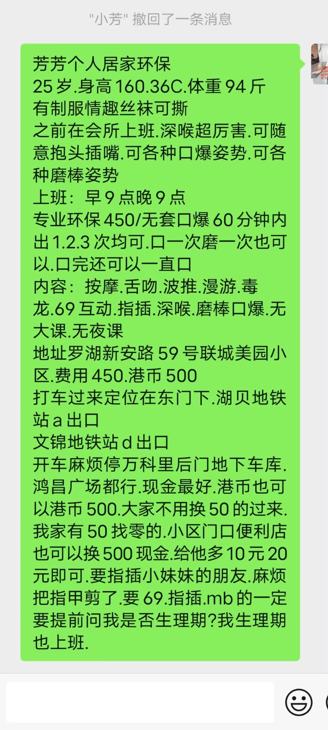 前是在四推店里加的姐姐,最近风大自己在家接客做服务 ...